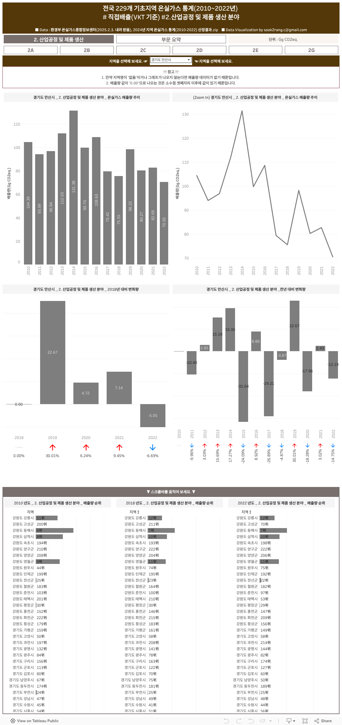 전국 229개 기초지역 온실가스 통계(2010~2022년)_직접배출(VKT 기준) #2.산업공정 및 제품 생산