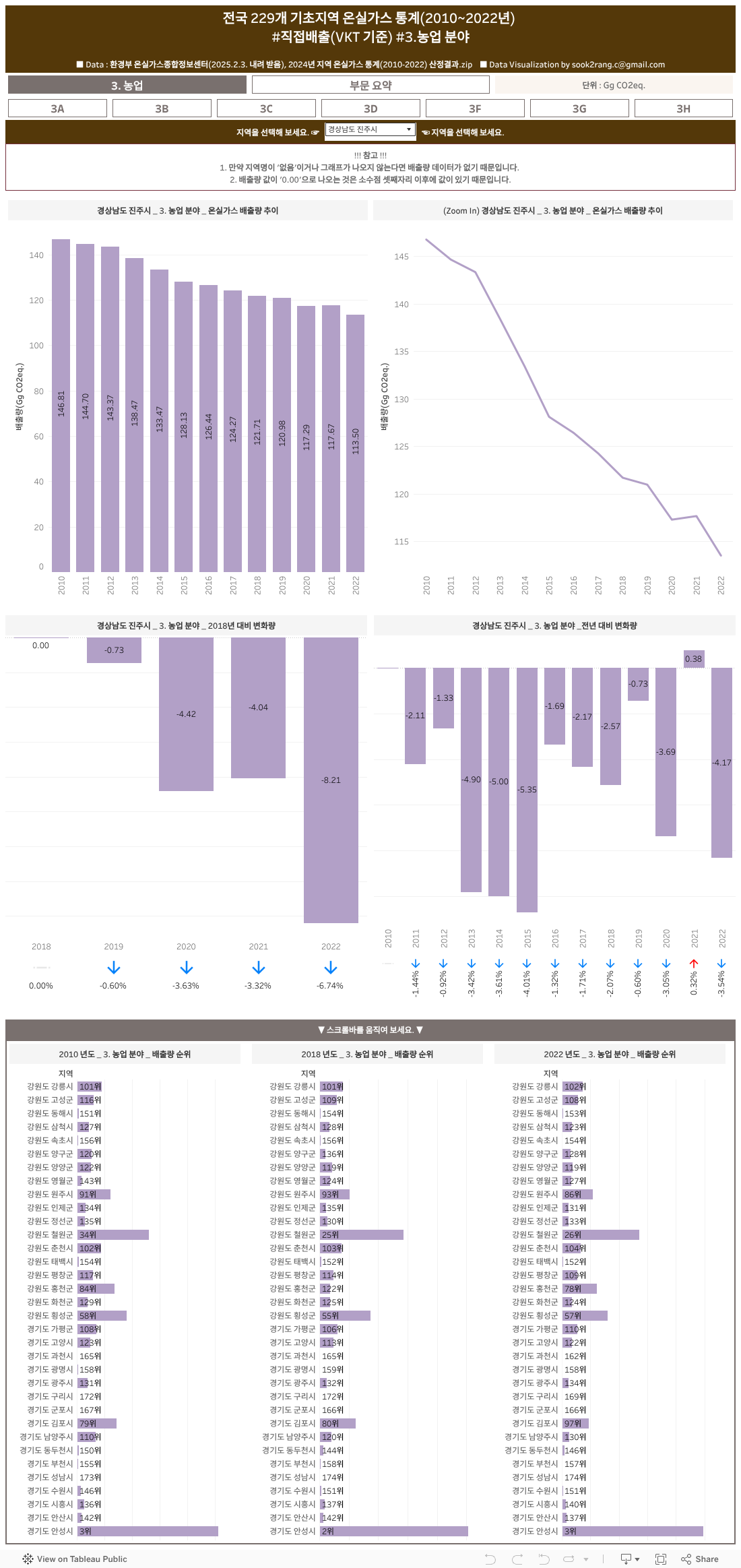 전국 229개 기초지역 온실가스 통계(2010~2022년) # 직접배출(VKT 기준) #3.농업