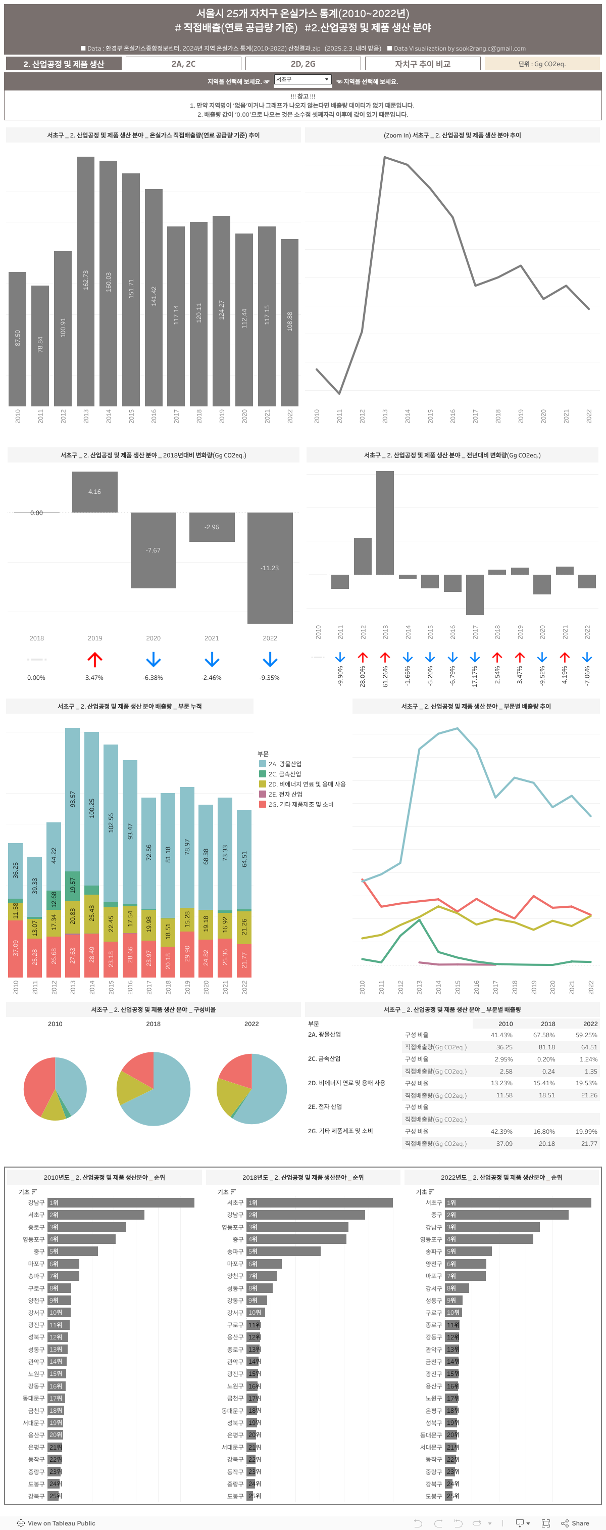 서울시 25개 자치구 온실가스 통계(2010~2022년)_직접배출(연료 공급량 기준) #2.산업공정 및 제품 생산