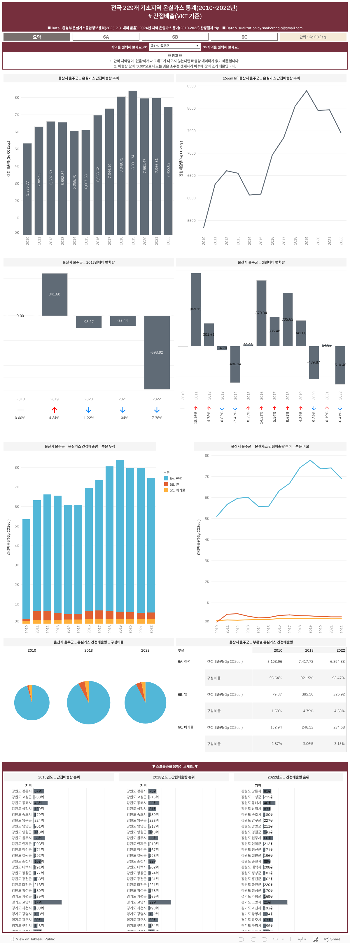 전국 229개 기초지역 온실가스 통계(2010~2022년) # 간접배출(VKT 기준)