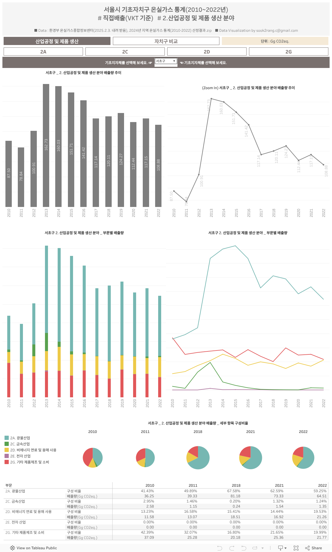 서울시 25개 자치구 온실가스 통계(2010~2022년)_직접배출(VKT 기준) #2.산업공정 및 제품 생산