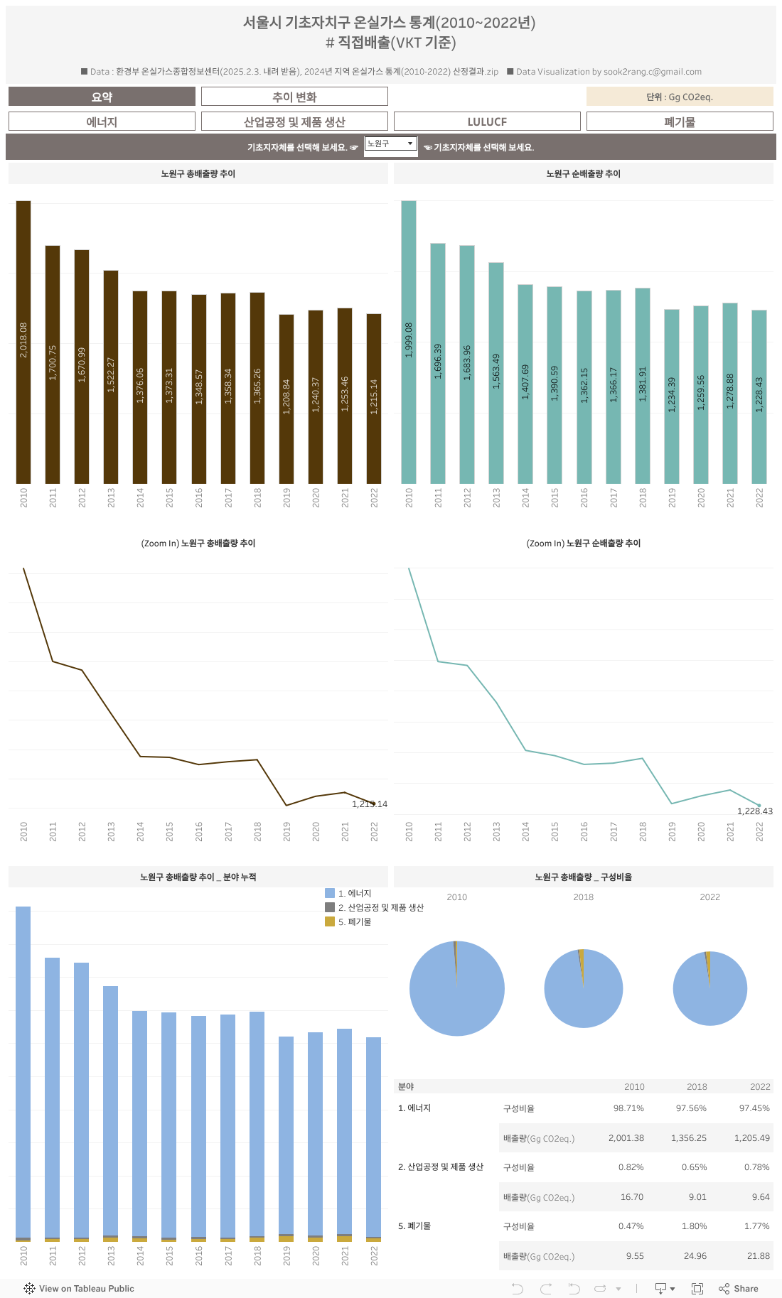 서울시 25개 자치구 온실가스 통계(2010~2022년)_직접배출(VKT 기준) #0.요약