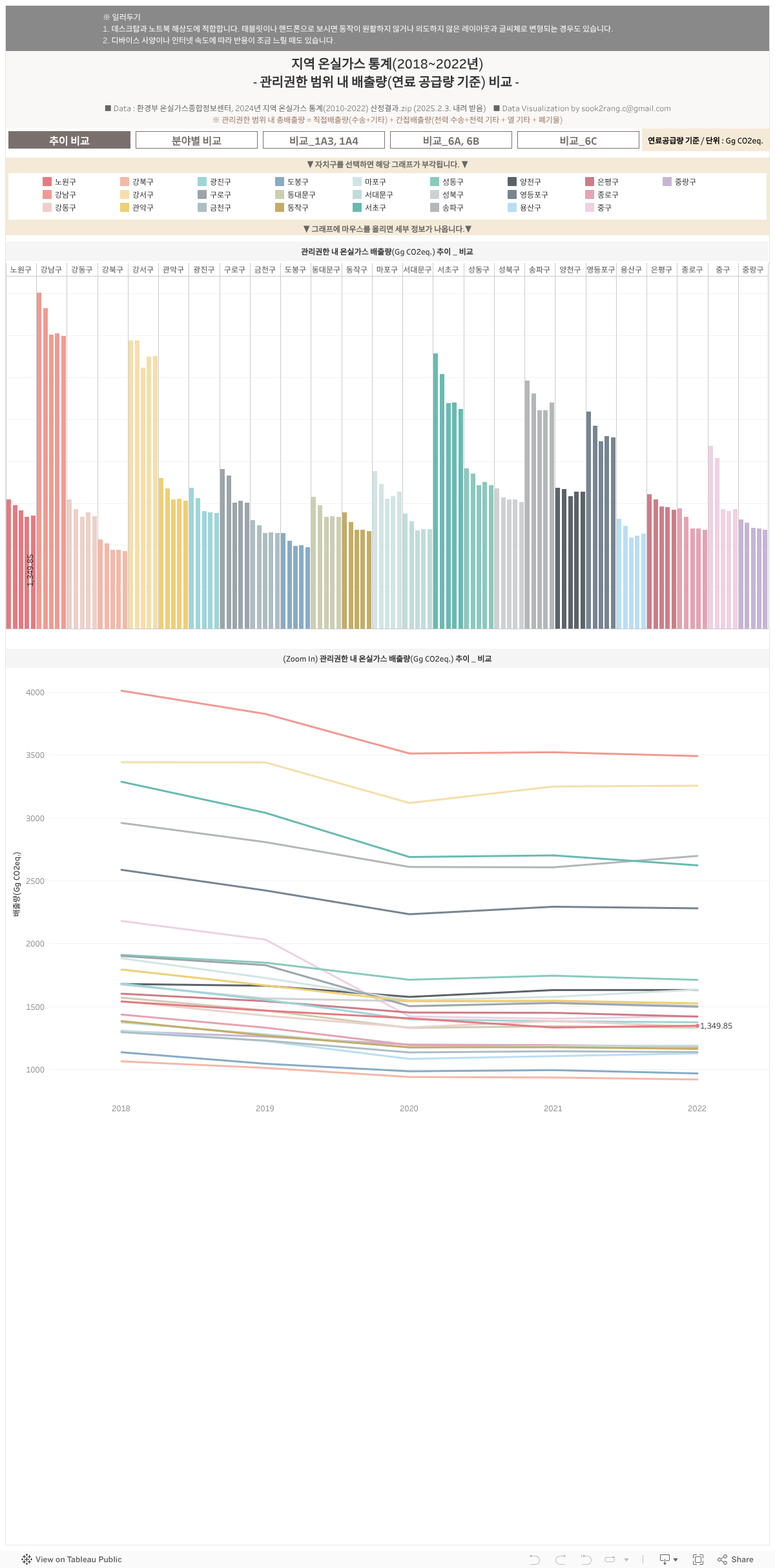 서울시 25개 자치구 관리권한 범위 내 온실가스 통계(2010~2022년) 추이 비교