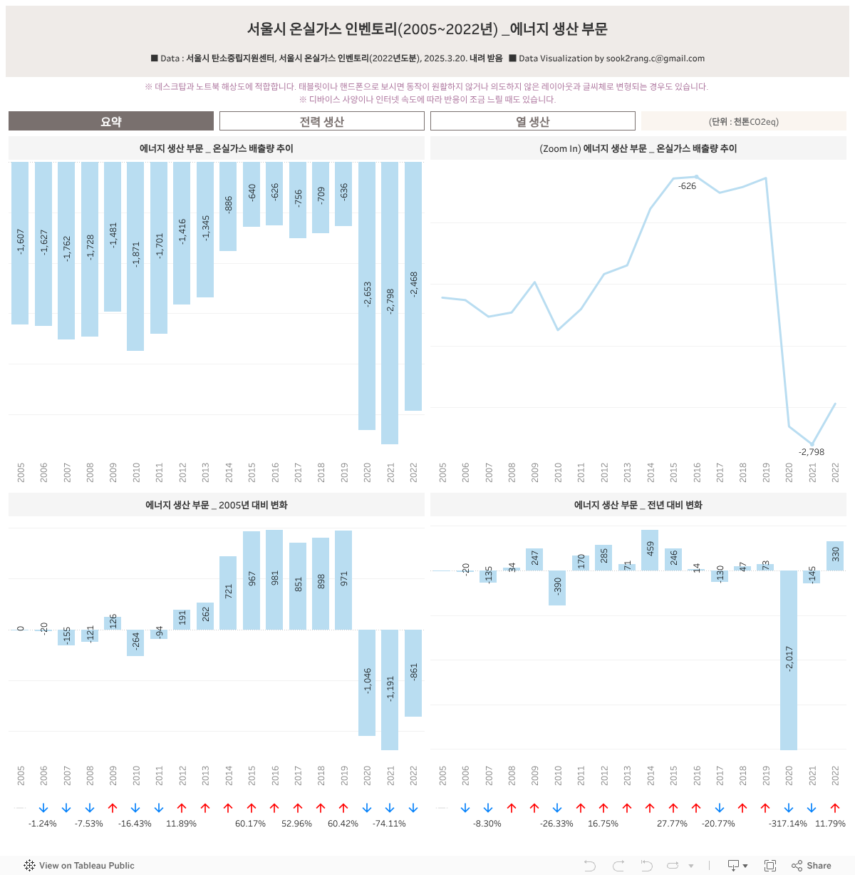 ■ 데이터 : 서울열린데이터광장, ☞ 서울시 온실가스 인벤토리 부문별 현황.csv (2025.3.20. 내려 받음)