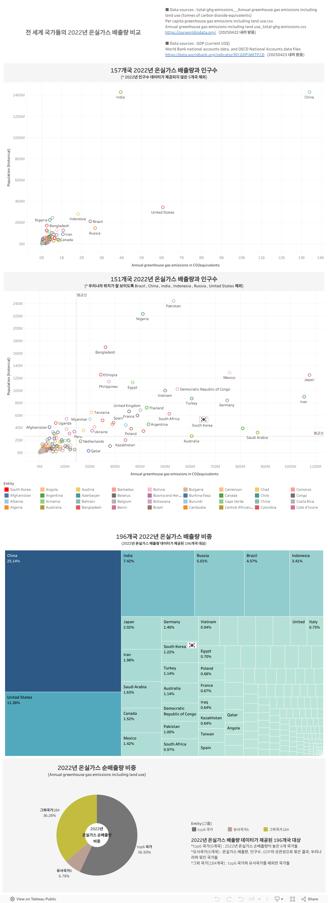 전 세계 국가들의 2022년 온실가스 배출량 비교 #온실가스_배출량과 인구수