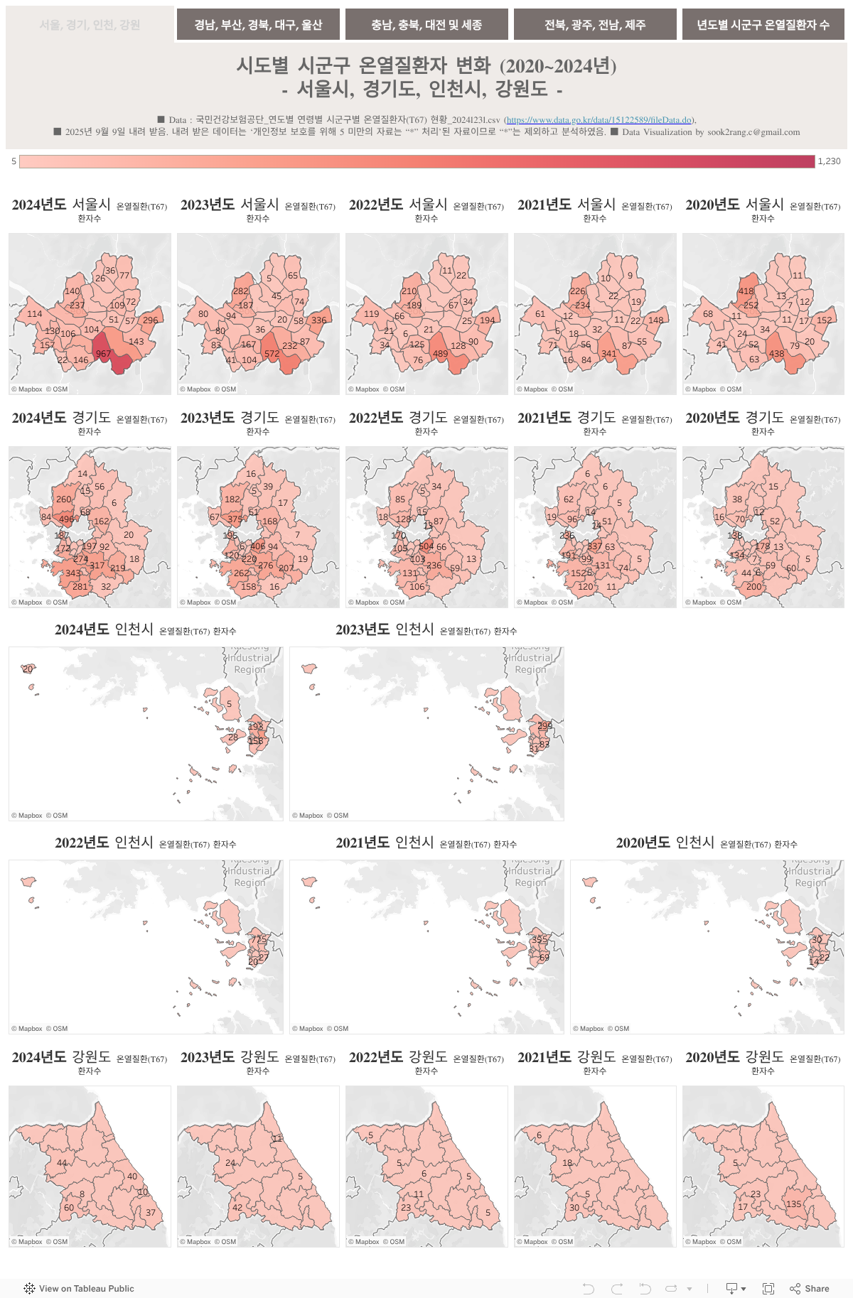 ■ Data sources : ☞ 국민건강보험공단_연도별 연령별 시군구별 온열질환자(T67) 현황_20241231.csv (2025년 9월 9일 내려 받음)